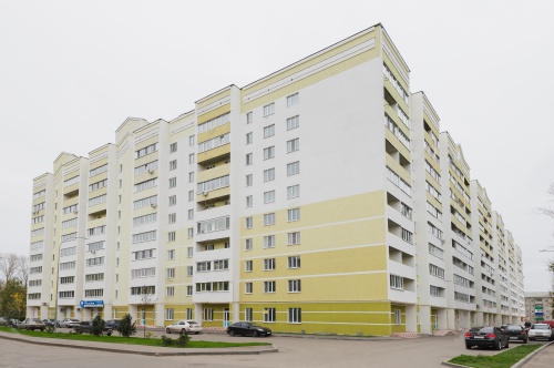 - 10-ти этажный, 10-ти подъездный жилой дом, фундамент - сваи, стены кирпичные, плиты перекрытий - железобетонные, кровля плоская, с мягким рулонным покрытием. фасад утепленный с декоративной отделкой, оконное заполнение пластиковое.